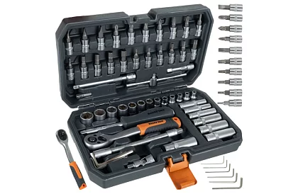 Un set practic și fiabil de unelte manuale, care vă va facilita munca în atelier, garaj și în întreținerea obișnuită a casei. Datorită oțelului de calitate crom-vanadiu, suportă sarcini mari și oferă o durată lungă de viață. Cheia cu clichet precis de 1/4" cu 72 de dinți permite o muncă confortabilă chiar și în spații înguste, iar trusa clară asigură că veți avea totul întotdeauna la îndemână.