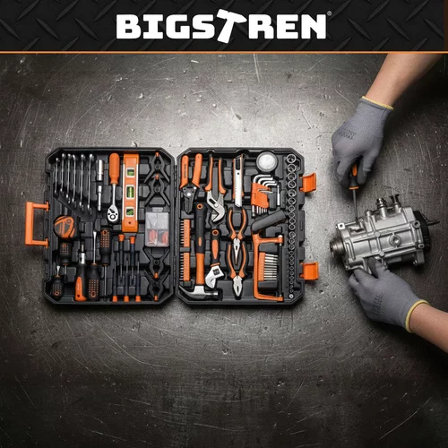 Soluție completă pentru acasă, atelier și mașină, care oferă siguranță la fiecare reparație. Echipamentul variat permite realizarea montajului de mobilă, reparații obișnuite, service auto și lucrări de bricolaj fără a fi necesară achiziționarea de unelte suplimentare. Geanta organizată menține fiecare unealtă ferm la locul său, economisind timp și asigurând o manipulare confortabilă acasă și în călătorii.