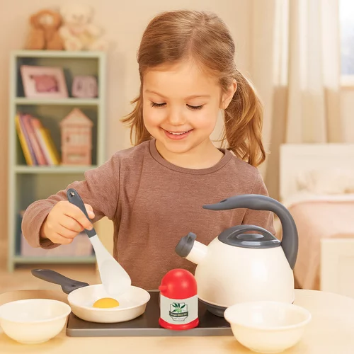 Susține dezvoltarea zilnică a copilului prin jocuri distractive și educative. Copiii își dezvoltă abilitățile manuale, imaginația, abilitățile de joc de rol și învață activități zilnice în bucătărie.