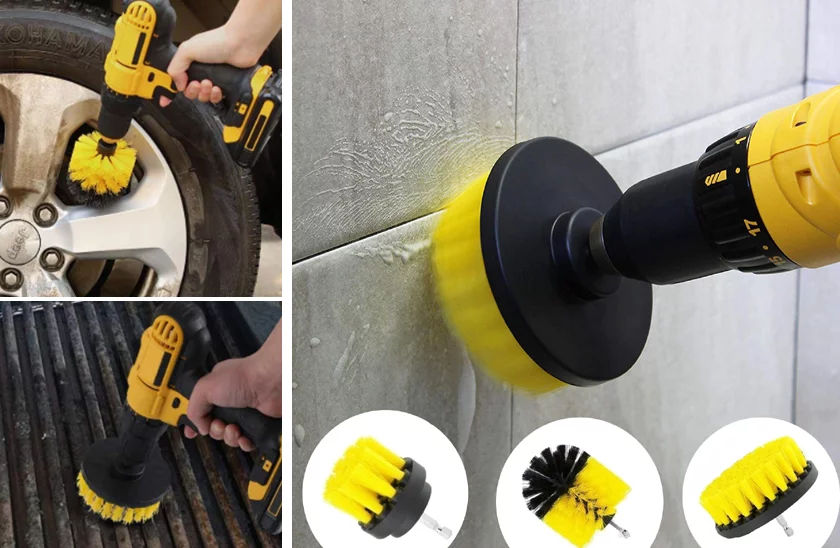 Tot ce trebuie să faceți este să alegeți peria potrivită, în funcție de suprafață și dimensiune, iar apoi puteți începe curățarea. Peria aleasă se atașează la mandrina bormașinii prin intermediul unui adaptor metalic, după care se mandrina se strânge bine. După aceea, porniți bormașina și apăsați pe suprafață sau materialul de curățat. Aceste perii, în combinație cu bormașina, reprezintă niște instrumente de curățat foarte eficiente.