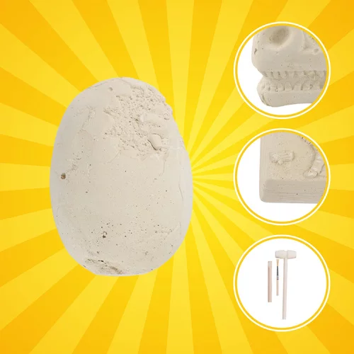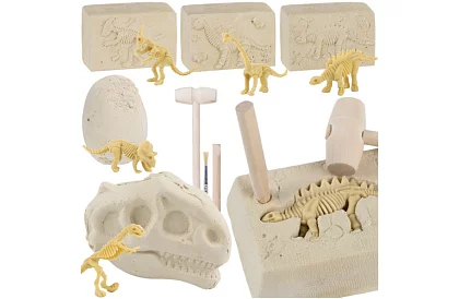 • Blocuri: 3 blocuri de gips cu schelete ascunse, 1 ou de gips, 1 craniu de dinozaur din gips