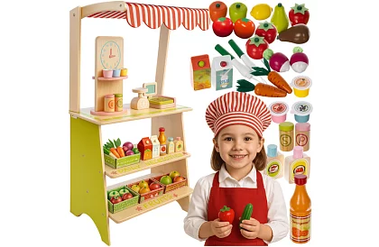 Permite copiilor să se joace la supermarket, să dezvolte imaginatia, să învețe numărarea și organizarea. Setul combină distracția cu învățarea și oferă elemente realiste care susțin coordonarea, abilitățile manuale și interacțiunile sociale. Construcția stabilă și materialele sigure garantează distracție pe termen lung fără griji pentru părinți.