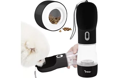Sticla practică este companionul ideal pentru plimbări, excursii sau drumeții cu câinele. Permite stocarea apei și a hranei și, în același timp, hrănirea și adăparea animalului dumneavoastră de companie, fără a necesita alte vase. Forma ergonomic și bolul integrat asigură o adăpare confortabilă pentru câinii de rase mici și mari, chiar și cu o singură mână, în timp ce butonul cu opțiune de blocare previne vărsarea apei.
