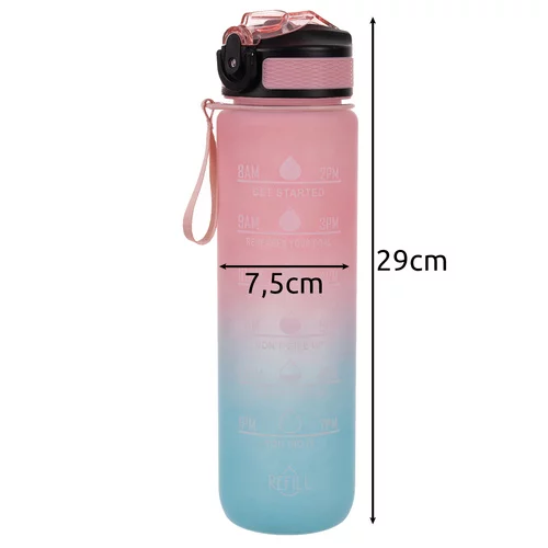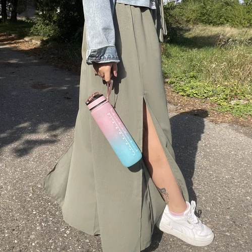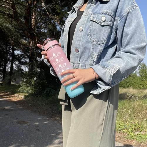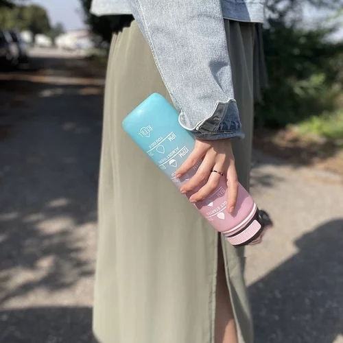 Sticla motivațională oferă o modalitate practică și sigură de hidratare pe parcursul întregii zile. Este fabricată dintr-un material PP rezistent și non-toxic, cu un capac din silicon moale, care este sigur pentru dinți și gingii. Datorită tubului detașabil, nu este necesar să înclinați sticla, iar culorile sale pastelate oferă un aspect estetic și la modă potrivit pentru utilizarea zilnică. Poate fi utilizată cu lichide de la -20 °C la 80 °C.