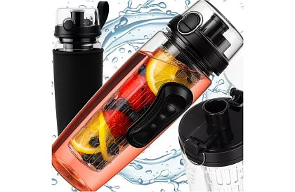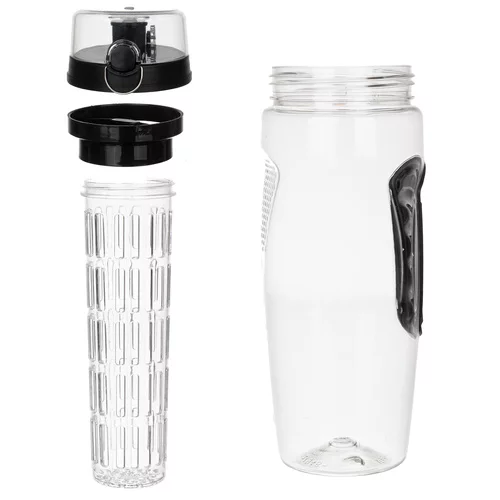 Practică sticlă sportivă cu capacitate de 1 litru permite o băut comodă și igienică acasă, la birou, la școală sau în timpul sportului. Inserts detașabil pentru fructe oferă posibilitatea de a prepara apă aromatizată și de a te bucura de băuturi sănătoase și delicioase oricând. Etanșare din silicon și mecanism de închidere asigură 100% etanșeitate, astfel încât nu există riscul de scurgeri de lichide nici măcar atunci când este transportată în rucsac.