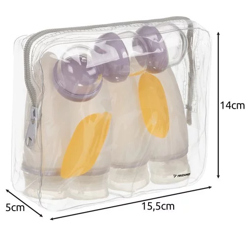 Setul practic permite să aveți toată cosmetica pentru călătorie la un loc și depozitată în siguranță. Sticlele și recipientele flexibile previn scurgerea cosmeticii și protejează bagajele de contaminare. Capacitatea corectă și compatibilitatea cu reglementările pentru bagaje de mână facilitează călătoria cu avionul, în timp ce punga transparentă și designul elegant combină funcționalitatea cu estetica.