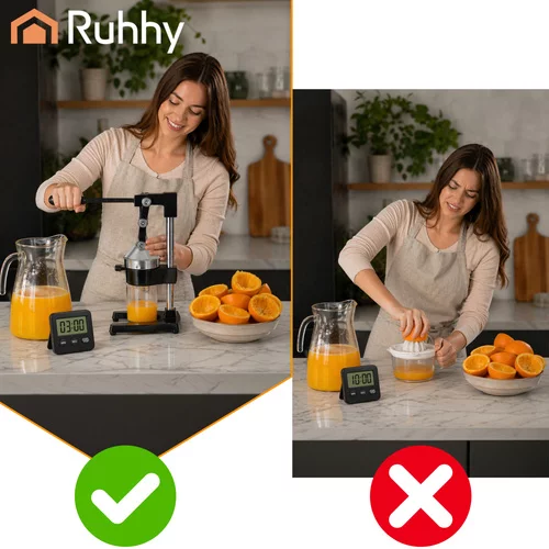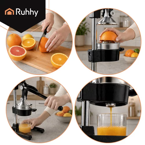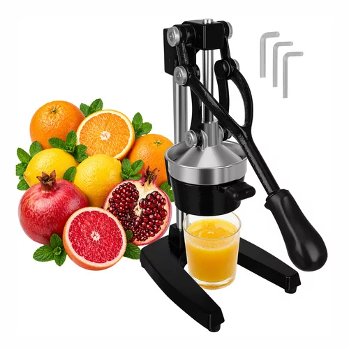 Suc proaspăt făcut acasă, fără electricitate și efort inutil, este ușor de obținut datorită stoarcătorului manual de citrice cu mecanism de pârghie. Construcția robustă și pârghia lungă permit generarea unei presiuni mari cu un efort minim, astfel încât să obțineți maximum de suc din fructe rapid și confortabil. Este perfect pentru acasă, cafenele, baruri și unități de gastronomie, unde veți aprecia fiabilitatea, ușurința în utilizare și întreținerea simplă.