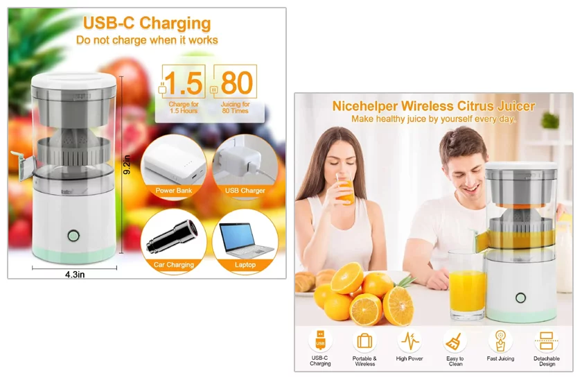 Permite prepararea ușoară a sucurilor 100% naturale, care oferă organismului vitamine și nutrienți esențiali. Designul wireless și portabil permite savurarea sucului proaspăt oriunde și oricând, prin simpla apăsare a unui buton. Designul compact și bateria încorporată asigură utilizarea comodă acasă, în grădină sau în aer liber.