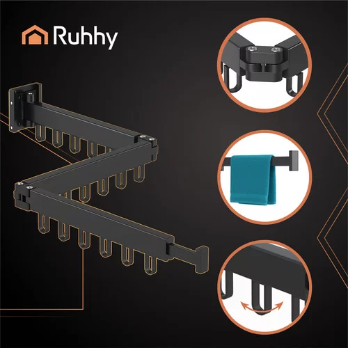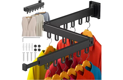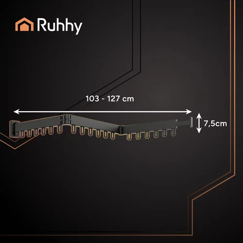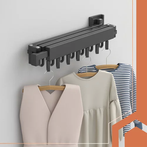 Practic uscător de rufe și suport pentru haine este soluția ideală pentru spații mici. După montare pe perete, nu ocupă niciun loc pe podea. Datorită construcției pliabile și extensibile, dimensiunea poate fi adaptată la cantitatea de rufe, iar după utilizare, uscătorul se pliază cu ușurință. Construcția solidă garantează stabilitate și rezistență chiar și la o sarcină mai mare. Un accesoriu elegant și confortabil pentru uscat și depozitat hainele acasă, în baie sau pe balcon.