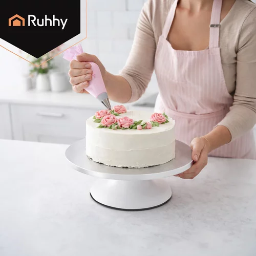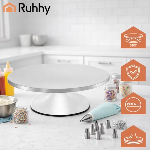 Doriți să decorați torturi confortabil, să serviți deserturi și să aveți un control mai bun în timpul lucrului? Acest suport rotativ Ruhhy este un ajutor practic pentru oricine coace acasă și creează regulat decorațiuni de patiserie. Datorită rotirii fluide și construcției stabile, decorarea va fi mai rapidă, mai precisă și mai confortabilă. Rotirea la 360° permite acces ușor la fiecare parte a tortului fără a fi nevoie de mutări constante.