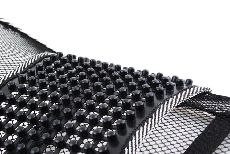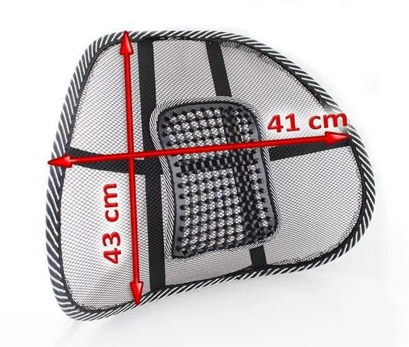 Perna de scaun oferă confort și susținere atunci când stați mult timp acasă, la birou sau în mașină. Elementele speciale de masaj stimulează coloana vertebrală și ameliorează tensiunea, făcând șederea mai plăcută. Perna este echipată cu curele flexibile care permit montarea ușoară pe orice tip de scaun, fotoliu sau scaun auto. Rama metalică robustă și plasa flexibilă se conformează perfect formei spatelui, susținând poziția corectă a corpului și asigurând circulația liberă a aerului.