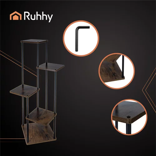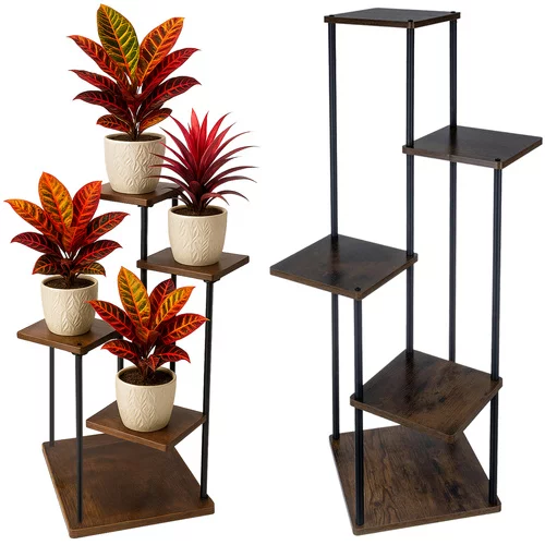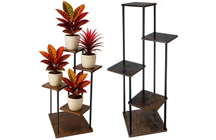 O soluție elegantă pentru expunerea plantelor, care combină funcționalitatea și designul modern. Un suport cu cinci niveluri în stil loft permite organizarea mai multor flori pe un spațiu mic și, în același timp, crearea unui accesoriu stilat pentru interior sau balcon. O structură metalică solidă asigură stabilitate și durabilitate, în timp ce combinația dintre cadrul negru și decorul din lemn are un aspect curat și atemporal.