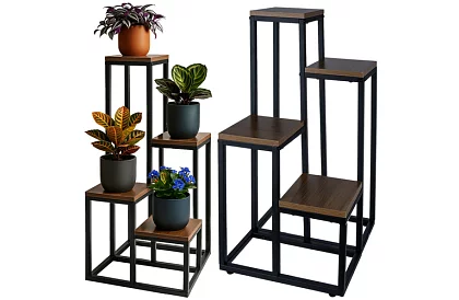 Un stativ pentru flori cu patru etaje în stil loft oferă o soluție elegantă și practică pentru expunerea plantelor acasă, pe balcon sau terasă. Datorită construcției metalice stabile, este sigur și durabil, designul minimalist se potrivește în orice interior. Mai multe niveluri permit plasarea mai multor flori pe un spațiu mic și, în același timp, mențin funcționalitatea și estetica.