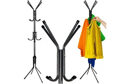 O soluție elegantă și practică pentru depozitarea ordonată a hainelor în orice interior. Construcția stabilă cu trei niveluri de suspendare permite depozitarea confortabilă a paltoanelor, jachetelor, eșarfelor și genților fără a fi necesară găurirea peretelui. Designul liber în picioare asigură o mutare ușoară, iar designul compact se potrivește și în spații mai mici, unde ajută la menținerea ordinii și stilului în același timp.