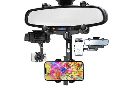 Asigură fixarea sigură și stabilă a telefonului pe oglinda retrovizoare a mașinii. Datorită construcției solide, padurilor de protecție moi și suportului ajustabil cu 4 puncte telefonul rămâne fixat în siguranță chiar și pe drumuri denivelate. Designul compact nu limitează câmpul vizual al șoferului și permite ajustarea poziției telefonului exact conform nevoilor dumneavoastră.