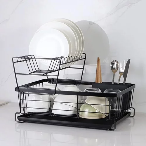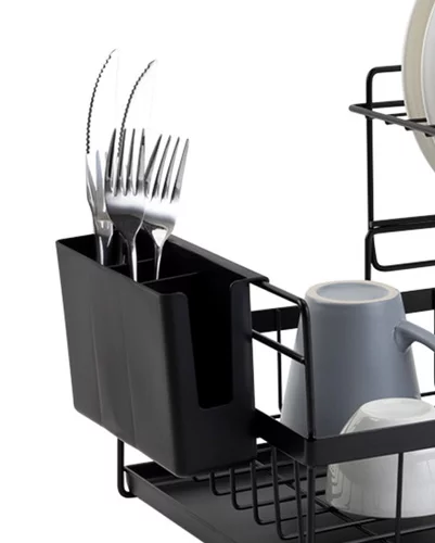 Obțineți ordine și uscare pe blatul de bucătărie datorită unui suport de scurgere practic cu două niveluri, care organizează eficient vasele după spălare. Capacitatea mare permite stocarea farfurii, pahare și tacâmuri fără a ocupa inutil spațiu. Construcția stabilă asigură utilizarea în siguranță chiar și la încărcare maximă, iar bolul de scurgere integrat protejează blatul de apă. Designul modern completează de asemenea fiecare bucătărie.
