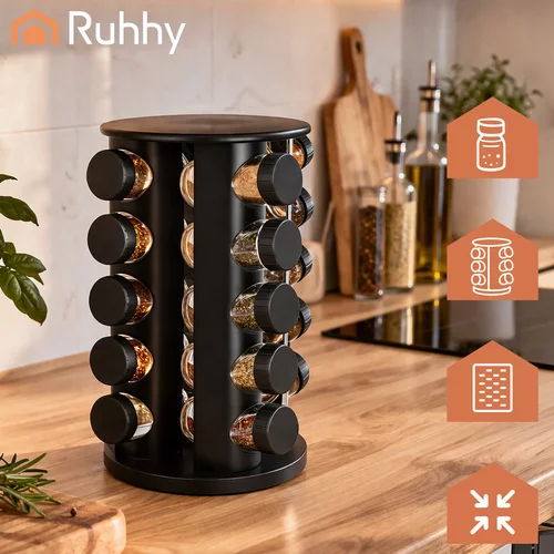 Doriți să aveți ordine în bucătărie și toate condimentele la îndemână? Această set de borcane pentru condimente Ruhhy cu suport rotativ oferă o soluție practică și elegantă pentru gătitul de zi cu zi. Datorită organizării clare, veți avea condimentele preferate întotdeauna la îndemână, iar gătitul va fi mai rapid și mai confortabil. Suportul rotativ de 360° permite accesul ușor la toate borcanele fără căutări îndelungate.