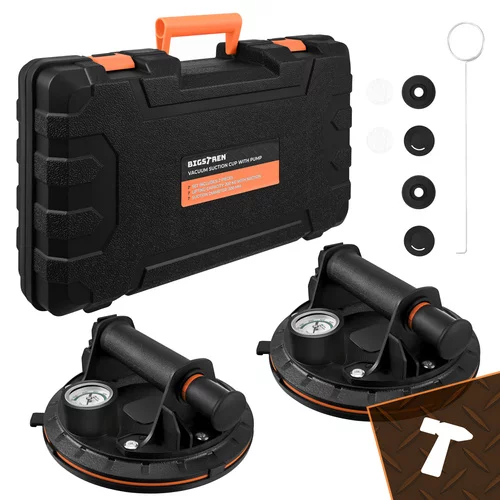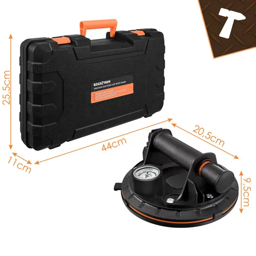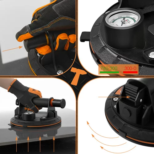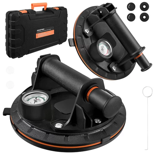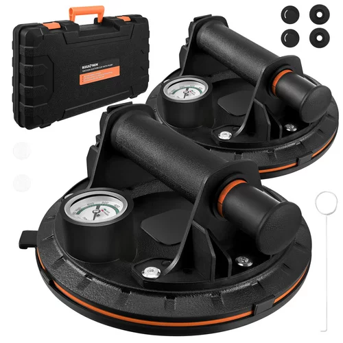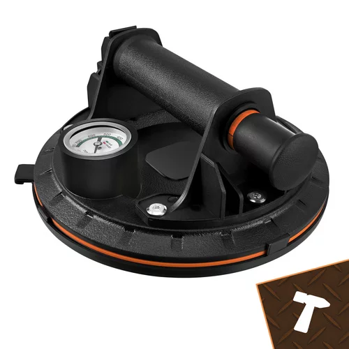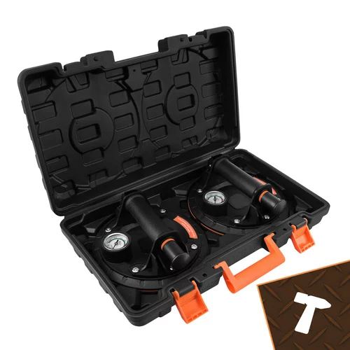 Set profesional de ventuze este destinat pentru transportul în siguranță al materialelor grele și sensibile, cum ar fi plăcile, gresia, sticla, plăcile sau panourile netede. Datorită pompei cu vacuum, manometrului și construcției robuste, permite manipularea sigură fără riscul de deteriorare a suprafeței. Ambalajul practic cu două bucăți crește stabilitatea în timpul lucrului.