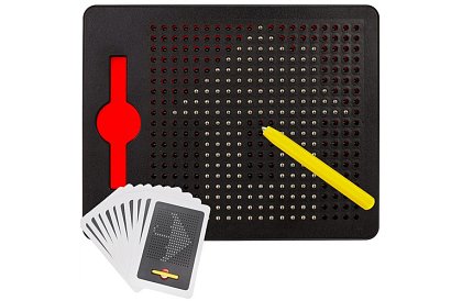 Tablă magnetică cu 380 de găuri/bile - Această tablă unică este o modalitate perfectă de a alunga plictiseala. Puteți desena pe ea la fel ca pe hârtie. Trebuie doar să atingeți cu stiloul gaura corespunzătoare și bila din interiorul tablei se va ridica și gaura se va umple. Utilizarea acestui joc contribuie semnificativ la protecția mediului. Nu trebuie să cumpărați constant materiale de desen – este suficient să folosiți tabla.