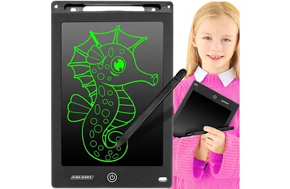 Tableta de desen 10" permite desenarea și scrierea în siguranță și distractiv pentru copii și adulți. Fiecare atingere, fie cu stiloul, unghia sau un alt obiect, creează pe ecran o imagine sau un text. Datorită mânerului pentru stilou, depozitarea sa este confortabilă și sigură. Tableta este ultra-subțire, ușoară și portabilă, nu emite radiații și protejează ochii. Funcția de blocare a ecranului protejează conținutul de ștergerea accidentală. Utilizarea tabletei înlocuiește hârtia și creionul, contribuind la protecția mediului și permite reutilizarea.