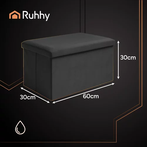 Taburet de depozitare RUHHY este practic și stilat accesoriu pentru orice interior. Tapițat cu catifea rezistentă la apă cu întărire din MDF oferă un loc moale pentru șezut și un spațiu de depozitare de 54 de litri, ideal pentru jucării, pături sau diverse. Datorită designului pliabil, construcției solide și capacității de până la 80 kg combină funcționalitatea cu un aspect elegant, potrivit pentru living, dormitor sau hol.