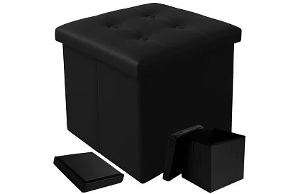 • Taburet pliabil cu spațiu de depozitare – pouf negru