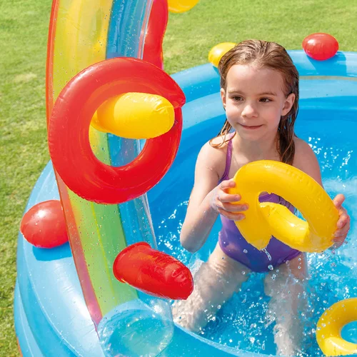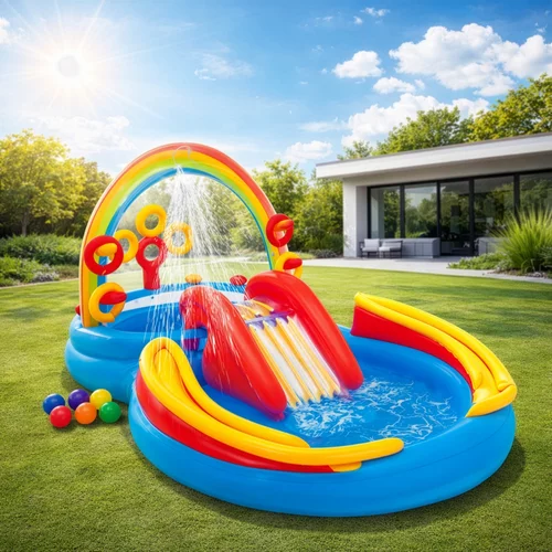 Transformă grădina într-o lume acvatică distractivă plină de râsete și mișcare, unde copiii se pot bucura de răcorire și joc activ în zilele călduroase. Toboganul, fântâna și elementele de joacă oferă posibilități infinite de distracție, în timp ce execuția moale și elementele de siguranță asigură confortul și liniștea părinților. O soluție ideală pentru zilele de vară fără a fi nevoie să părăsiți casa.