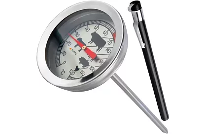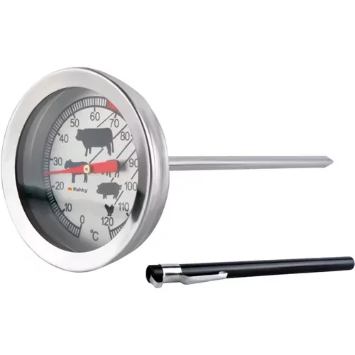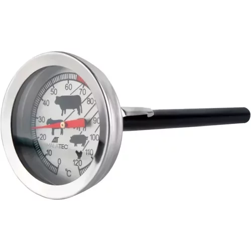 Monitorizarea precisă a temperaturii cărnii în timpul afumării și gătitului fără a afecta structura. Sonda subțire cu pini pătrunde ușor în profunzime și lasă o amprentă minimă, ceea ce ajută la obținerea unei gătiri uniforme și unei calități constante a rezultatului. Un cadran clar cu simboluri orientative simplifică controlul temperaturii pe parcursul întregului proces.