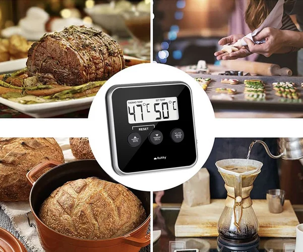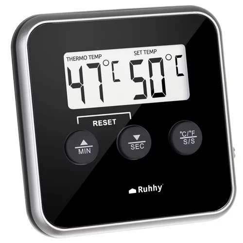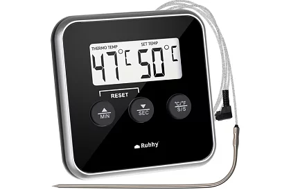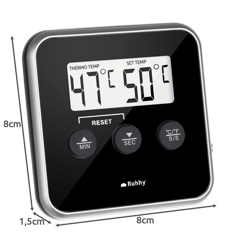 Acest termometru este ajutorul ideal pentru pregătirea cărnii, lichidelor sau uleiurilor și vă permite să controlați cu ușurință temperatura cu o precizie de până la un grad. Ecranul LCD mare și clar asigură o citire ușoară a valorilor, în timp ce magnetul de pe spate permite fixarea termometrului pe suprafețe metalice, cum ar fi frigiderul, cuptorul sau grătarul. Funcția de alarmă sonoră vă va avertiza imediat ce temperatura atinge valoarea setată, iar cronometru practic va facilita urmărirea precisă a timpului de gătire.