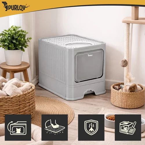 Oferiți pisicii dumneavoastră un loc confortabil și igienic pentru nevoile zilnice. Toaleta închisă pentru pisici ajută la limitarea răspândirii mirosului, reține litiera în interior și oferă animalului mai multă intimitate. Datorită sertarului retractabil, curățarea este rapidă și convenabilă, astfel încât întreținerea necesită doar un timp minim. Designul modern se integrează ușor în orice interior.