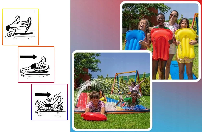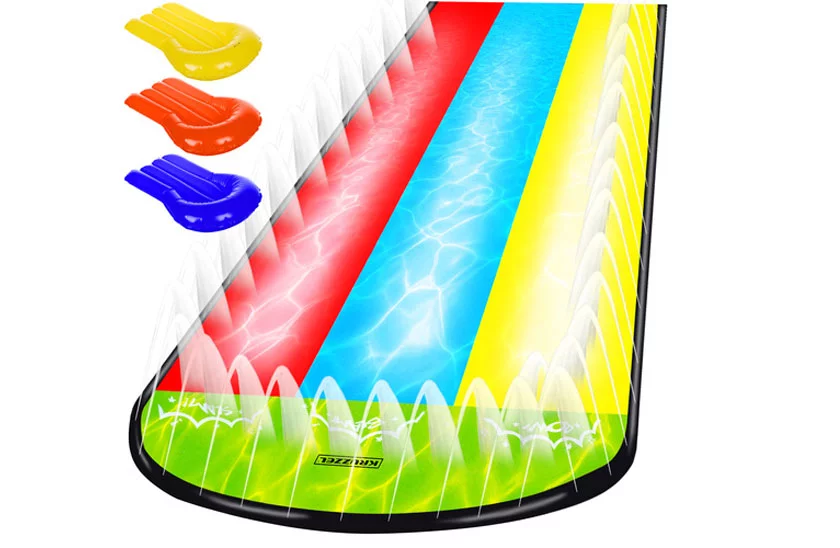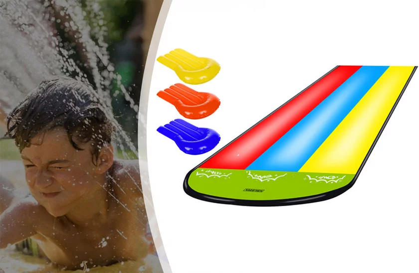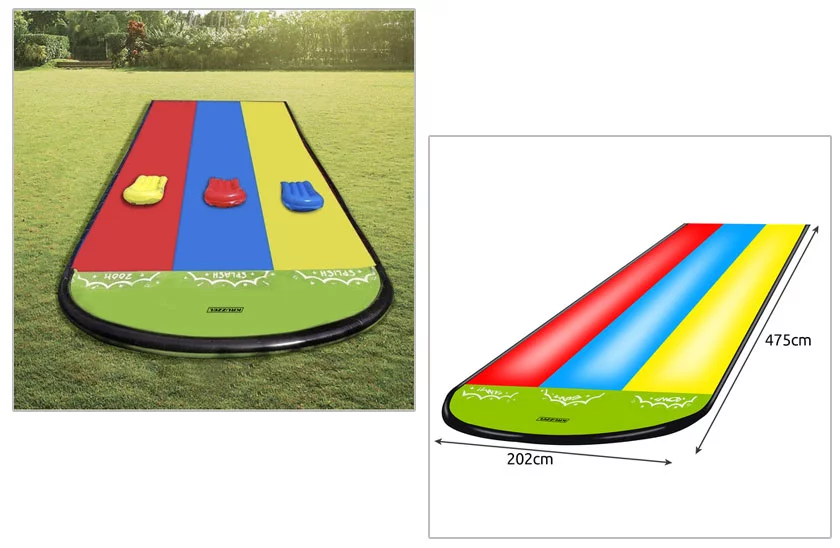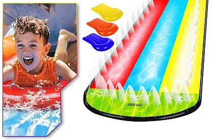 Perfect pentru curse pline de adrenalină sau coborâri relaxante – suprafața netedă și materialele de calitate garantează o alunecare rapidă și confortabilă. Conectează furtunul de grădină și fântâna va adăuga un plus de răcorire și viteză.