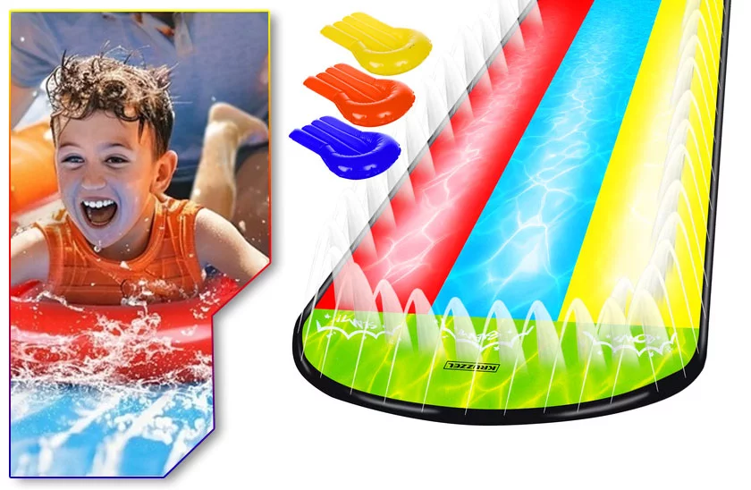 Bucură-te de vară la maximum! Acest tobogan acvatic triplu aduce distracția direct în curtea ta – râsete, curse și aventuri pentru întreaga familie. Trei piste de alunecare, trei plute și nenumărate moduri de a petrece zilele toride alături de cei dragi.