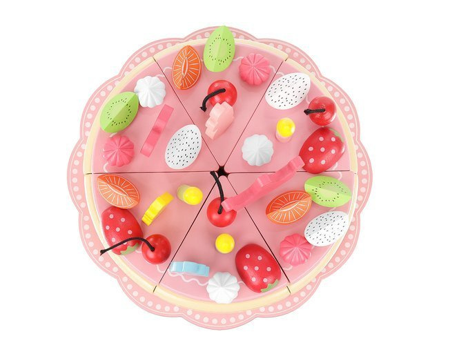 Această set de tort de aniversare din lemn oferă distracție creativă nelimitată pentru copii mici și mari. Puteți decora tortul după propriile idei, adăugând fructe, bezele și lumânări, care se mențin datorită magneților. Tortul final poate fi „tăiat cu un cuțit adevărat” și servit pe farfurii, ceea ce exersează abilitățile motorii fine și pregătește copiii pentru utilizarea unui cuțit adevărat. Elementele colorate atrag atenția și permit ore de joacă și învățare.