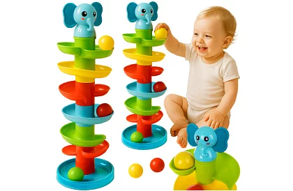 Turnul cu bile colorate și tobogan spiral aduce bucurie copiilor prin mișcare, sunet și descoperire. Este suficient să pui bila în vârf și să urmărești drumul ei în jos pe spirală, ceea ce susține motricitatea fină, coordonarea mână-ochi și gândirea logică. Datorită construcției simple, jucăria este ideală pentru copiii mici și oferă distracție lungă și sigură acasă și în călătorii.