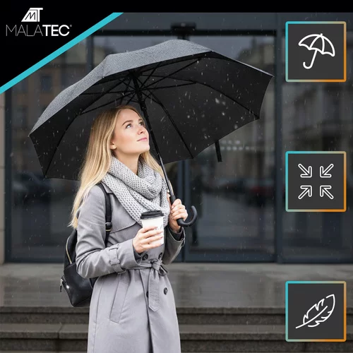 Protejați-vă de ploaie și vânt cu un umbrela rezistentă și practică Malatec. Datorită butonului de deschidere rapidă, o pregătiți pentru utilizare în câteva secunde. Ușoară și compactă, se potrivește cu ușurință în geantă sau rucsac, iar cadru solid cu 8 brațe rezistă la rafalele de vânt. Acoperișul din poliester durabil se usucă rapid, își păstrează culoarea și oferă o protecție fiabilă.