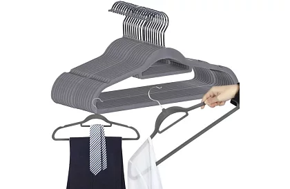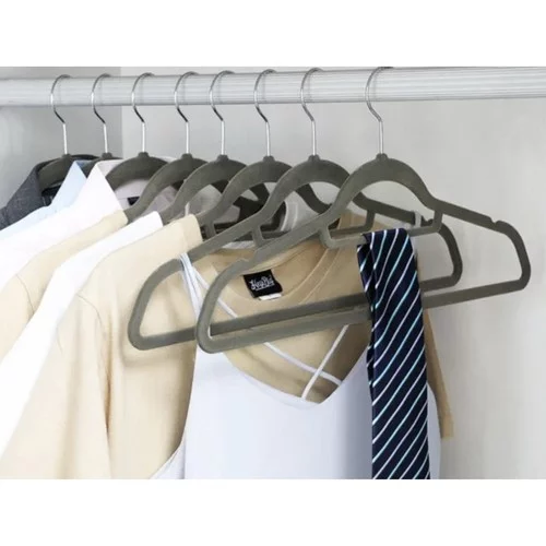 Setul de 20 de umerașe din catifea este accesoriul ideal pentru garderoba dumneavoastră. Datorită cârligului rotativ și designului practic, veți economisi spațiu, veți preveni alunecarea și cutele hainelor și veți organiza cu ușurință hainele, cravatele sau centurile. Umerașele sunt plăcute la atingere și protejează țesăturile delicate.