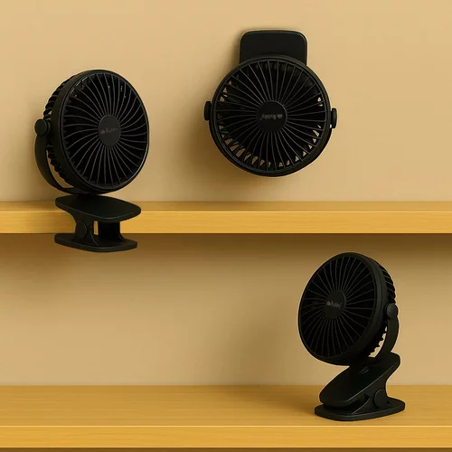 Ventilator compact și multifuncțional 3 în 1 – prindeți, așezați sau suspendați-l oriunde aveți nevoie. Ideal pentru birou, dormitor, copii și cărucior. Silenzios, economic și flexibil – oferă o briză proaspătă exact acolo unde aveți nevoie.