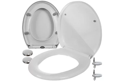 Scaun de toaletă profilat special cu margine oferă închidere confortabilă și silențioasă. Fabricat din polipropilenă de calitate (PP) rezistentă la umiditate, ușor de curățat și potrivit pentru majoritatea vaselor de toaletă de pe piață. Distanța ajustabilă a balamalelor 6–23 cm și montajul cu șuruburi asigură o fixare sigură și fermă.