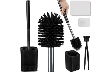 Peria neagră pentru WC cu suport combină igiena și eleganța în baie. Curăță eficient locurile greu accesibile, mizeria rămâne limitată datorită periilor neabsorbante și suportului practic. Montaj fără găurire permite fixarea rapidă pe perete sau așezarea simplă lângă toaletă.