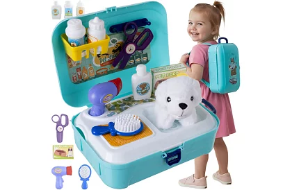 Jucăria oferă distracție, creativitate și învățarea responsabilității. Copiii învață să aibă grijă de un animal de pluș, să-l perie, să-l baște și să-i taie unghiile, în timp ce își dezvoltă abilitățile motorii fine, empatia și imaginația. Rucsacul compact permite stocarea și transportul practic al întregului salon – ideal pentru călătorii sau joacă acasă.