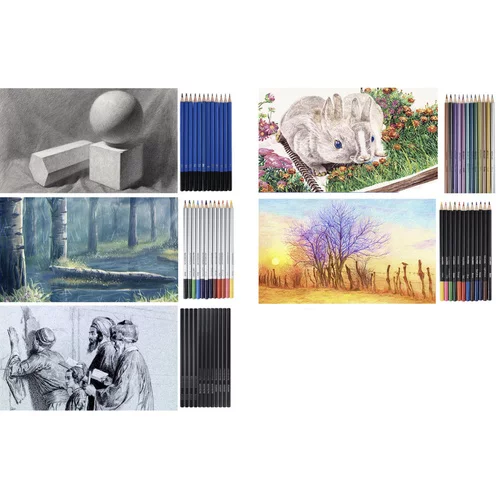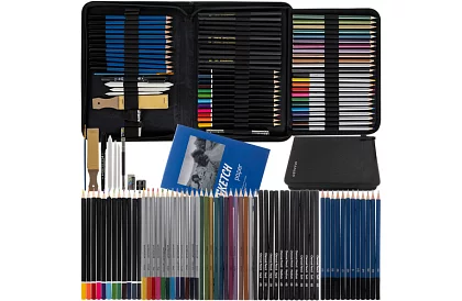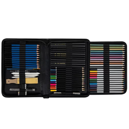 Setul complex de instrumente de desen oferă tot ce este necesar pentru schițare, desen și umbrire într-un singur pachet practic. O selecție bogată de unelte permite crearea de schițe detaliate, ilustrații și studii artistice. Elegantul caz de țesătură cu o organizare clară menține toate instrumentele în siguranță la locul lor și facilitează transportul. Datorită gamei largi de creioane de diferite durități, creioane colorate și accesorii, utilizatorul obține o libertate creativă maximă în muncă. O soluție ideală pentru desenatorii începători, studenți și artiști avansați, care doresc să aibă toate instrumentele de bază mereu la îndemână.