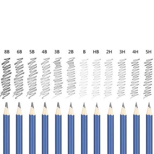 • 12 creioane de schițat (2H, 3H, 4H, 5H, HB, B, 2B, 3B, 4B, 5B, 6B, 8B)