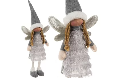 Elegant zână de Crăciun cu aripi argintii aduce o atmosferă de poveste în interior. Aripile fine și strălucitoare și ținuta de iarnă cu rochie cu guler și pălărie din blană conferă decorului un farmec festiv. Structura stabilă permite plasarea în siguranță pe masă, șemineu, pervaz sau sub bradul de Crăciun. Zâna este ideală ca decor independent sau parte a unei aranjamente de Crăciun.