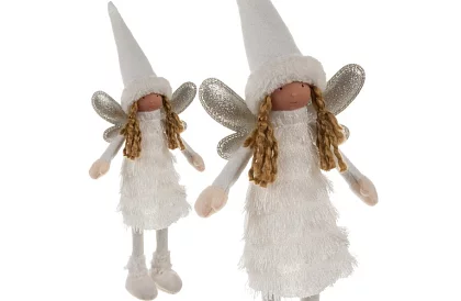 Zână de Crăciun cu aripi albe și argintii aduce o atmosferă de poveste în interior. Aripile strălucitoare conferă decorației ușurință și strălucire, în timp ce ținuta de iarnă cu rochie cu guler și pălărie din blană subliniază caracterul festiv. Execuția stabilă cu pantofi rezistenți permite o poziționare sigură pe masă, șemineu, pervaz sau sub bradul de Crăciun. Zâna este potrivită ca decor independent sau parte a aranjamentului de Crăciun.