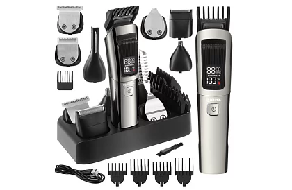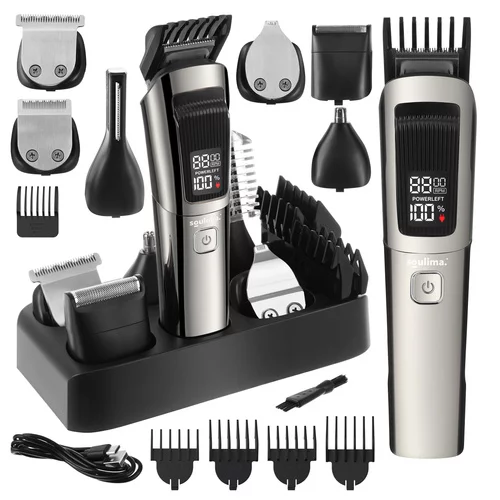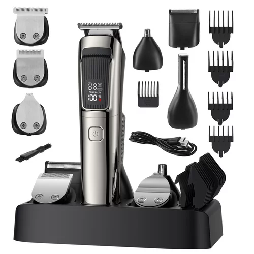Multifuncțional tăietor 8 în 1 permite îngrijirea completă a părului, bărbii și corpului cu un singur dispozitiv. Datorită setului de capete și accesorii interschimbabile, poate realiza tăiere rapidă, conturare precisă și bărbierit neted fără a trage. Lamele autoascuțite asigură o tăiere uniformă și o durată lungă de viață. Ecranul digital afișează starea bateriei, iar încărcarea USB-C permite reîncărcarea comod acasă sau în călătorie. Impermeabilitatea IPX6 facilitează întreținerea, deoarece capetele pot fi clătite ușor sub apă curentă după utilizare.